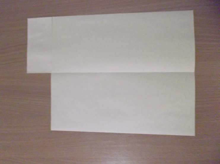 1. Перегибаем лист бумаги пополам по длине, с конца отгибаем полосу шириной 4,5–5 см