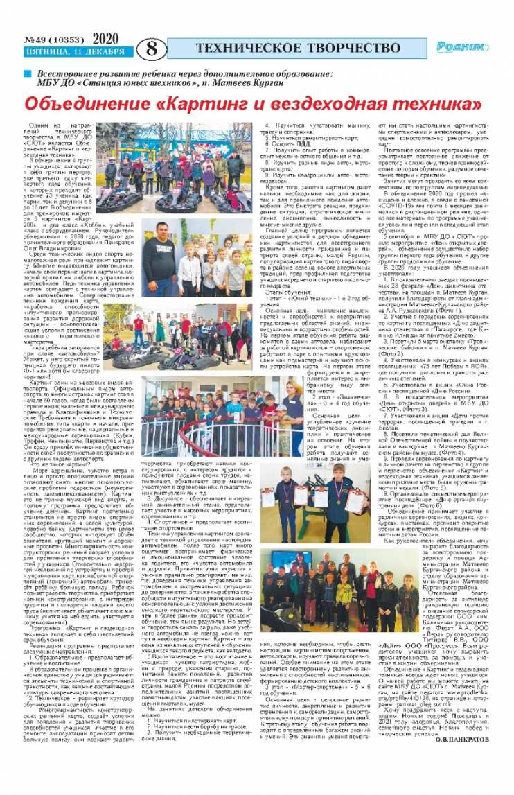 Добрый вечер, уважаемые коллеги! В эту пятницу вышла статья в местной газете о нашем объединении "Картинг и вездеходная техника".