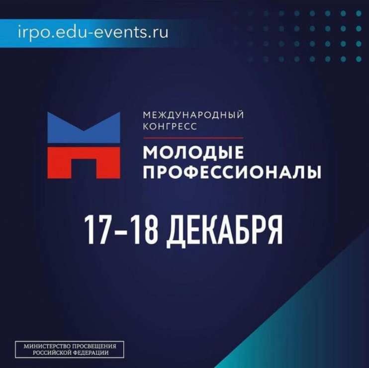 17–18 декабря Минпросвещения России проведёт XIV Международный конгресс «Молодые профессионалы». Он пройдёт в смешанном формате, участники смогут подключиться к мероприятию в онлайн-формате.