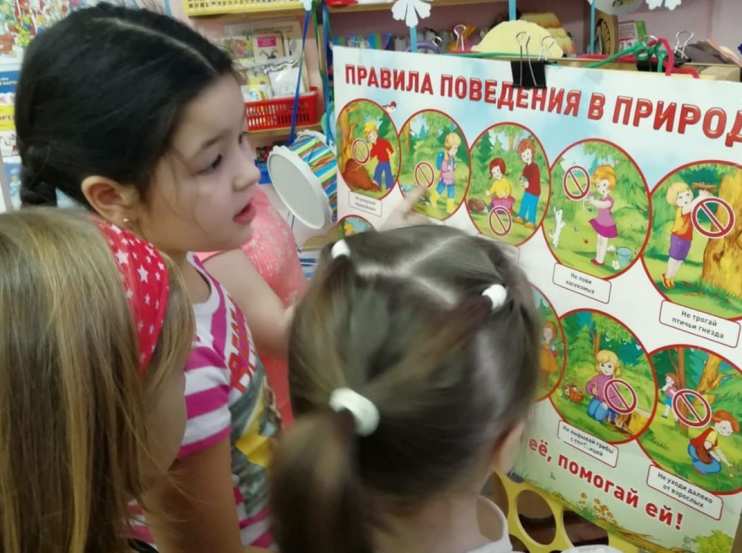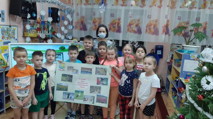 Мы с нашими воспитанниками вспомнили правила поведения в природе, просмотрели обучающую презентацию, познакомились с заповедниками и национальными парками нашего округа и выполнили коллективную работу "Эколята - дошколята".
