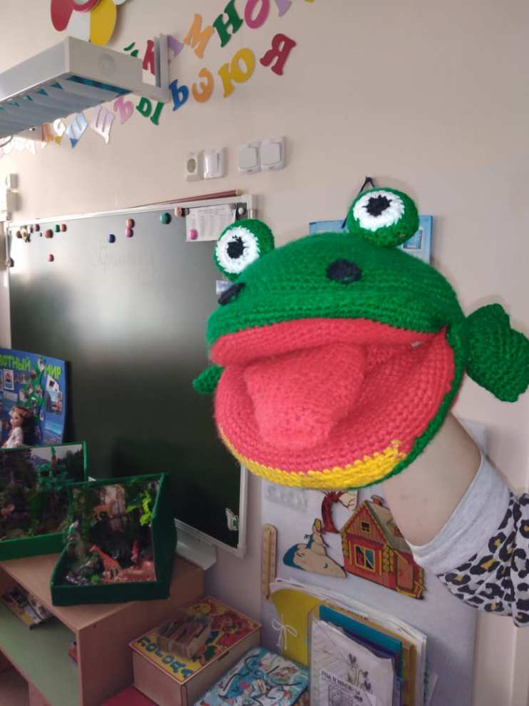 Сегодня все больше и больше детей с нарушением речи, с очень слабым речевым аппаратом. Очень трудно бывает удержать внимание детей, пробудить интерес к содержанию занятий, и я Вам предлагаю один из эффективных приемов увлечь ребенка - использование многофункциональной развивающей куклы «Лягушка-говорушка». Эта кукла дает возможность дополнить показ упражнений, т.к. во время объяснений упражнений мы не можем одновременно и выполнять упражнения. Лягушку связала крючком.