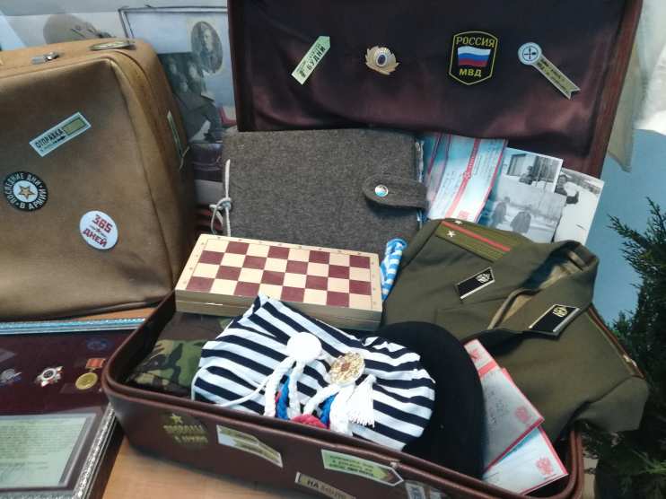 Кители, фуражки, ремни, фляжки, котелки, дембельские альбомы вызвали огромный интерес у школьников. Каждый из этих предметов хранит свою интересную историю из жизни защитников Родины.