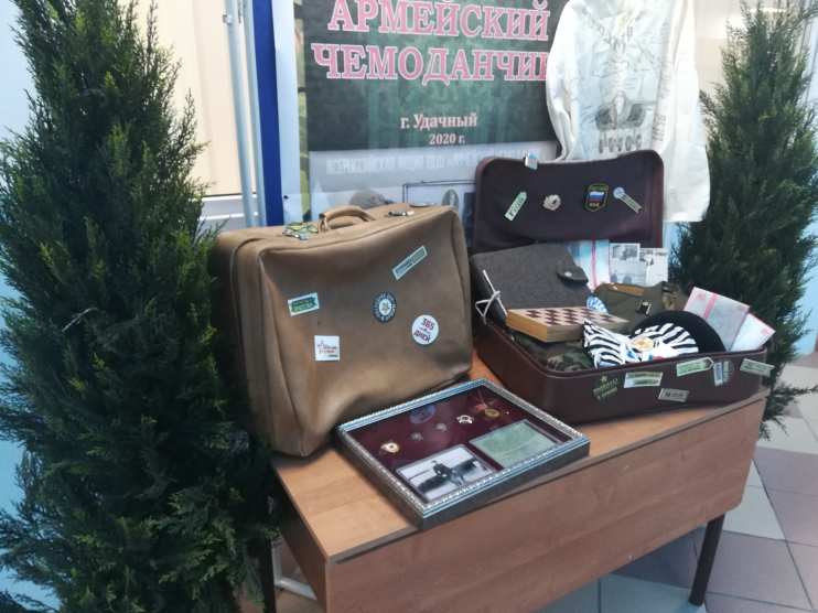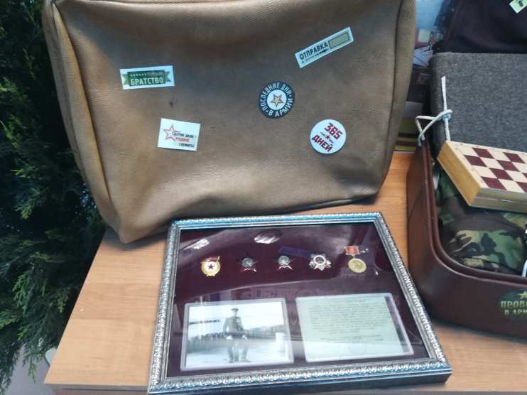 Всероссийская акция «Армейский чемоданчик», посвящённая Дню защитника Отечества. Ребята принесли множество памятных вещей, предметов армейской жизни своих дедов, отцов и братьев, отдавших долг Родине.