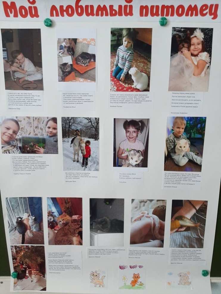 На стенгазете помещены фотоснимки детей и их домашних животных. Рядом с каждым фотоснимком размещен рассказ об этом животном. Дети и их родители активно приняли участие в создании стенгазеты, принося фотоснимки и рассказы о своих питомцах, а затем с большим интересом рассматривали стенгазету и делились впечатлениями друг с другом.