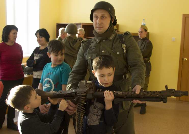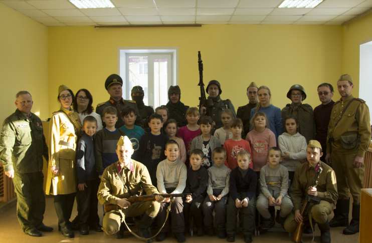 Далее детей познакомили с экипировкой солдат армии Советского Союза и Вермахта, с оружием Красной Армии (винтовка Мосина, винтовка СВТ-40, ручной пулемет ДП-27 и т.д.) и вооружением противника.