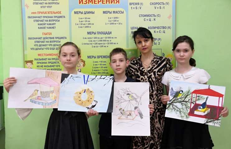 Вот и в этом году ребята моего класса участвуют в региональном творческом конкурсе рисунков "Зимующие птицы": Семенова Дарина, Бороздова Вика, Кобозев Роман, Касьяненко Катя.