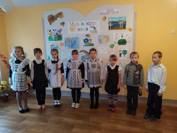 На втором этаже школы была оформлена выставка рисунков «Мир вокруг меня», где были представлены работы учащихся 1–4 классов. Все ребята проявили заинтересованность, некоторые ученики предоставили сразу по несколько своих работ.