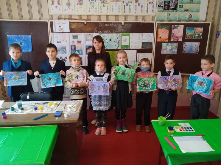 урок изобразительного искусства во 2 классе «Веточки деревьев с росой и паутинкой»,