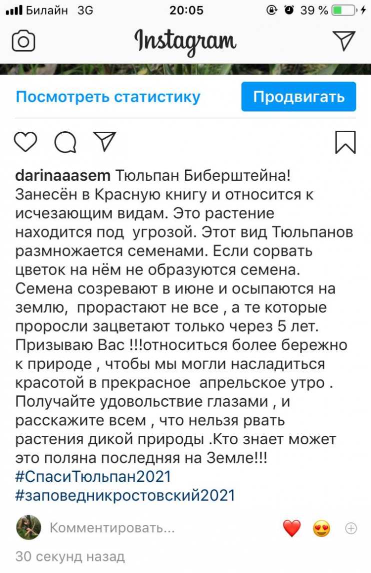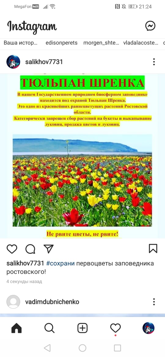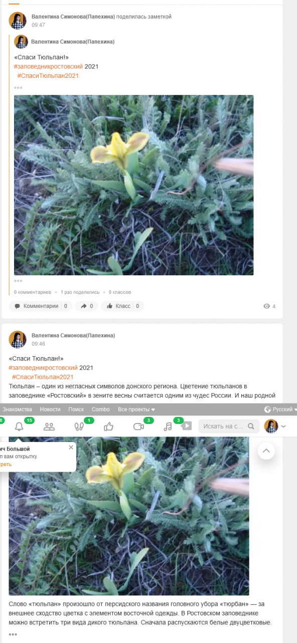 Конкурс экологических постов «Спаси Тюльпан!» направлен на привлечение внимания к проблеме сохранения первоцветов, занесенных в Красные книги.