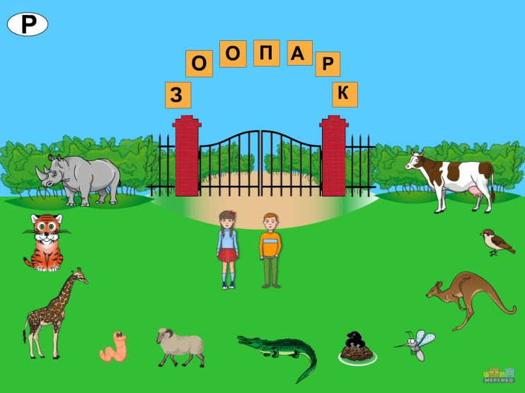 Пособие для автоматизации звука [Р] разработано с помощью программы "Конструктор картинок" (Мерсибо Плюс). С его помощью можно провести игры на развитие лексико-грамматических категорий: "Мы вчера кормили...", "Больше чем...", "Кто кем был?", а также побеседовать с ребенком по теме "Зоопарк".