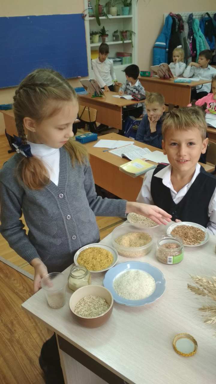 Дети наглядно познакомились с разными видами крупы, из которой можно сварить кашу. Узнали, что такое «гурьевская каша» и из чего варится «суворовская каша». Потрогали на ощупь и попробовали на зуб разные виды злаковых растений. Узнали, какая каша варится из зёрен проса. Пшённая каша на молоке — просто объедение. А каша из зёрен ячменя самая полезная — перловая.