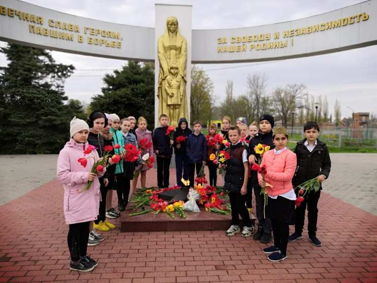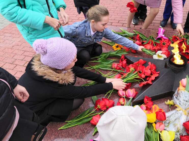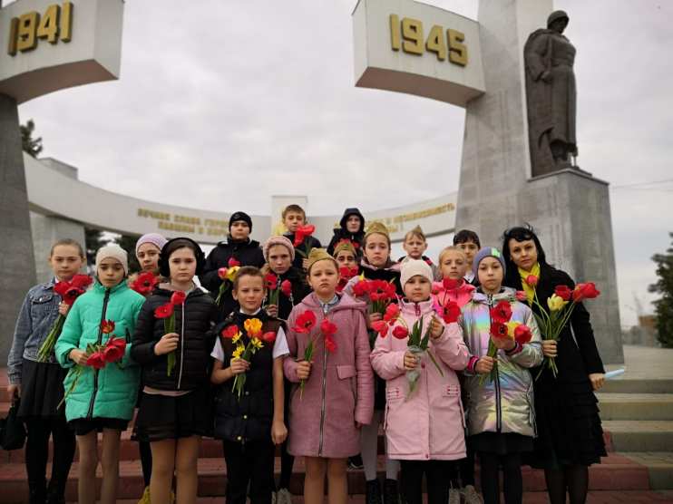 30 апреля после проведения внеклассного мероприятия «Я помню! Я горжусь!» мы с ребятами возложили цветы к Мемориалу павшим воинам на площади Юбилейной.
