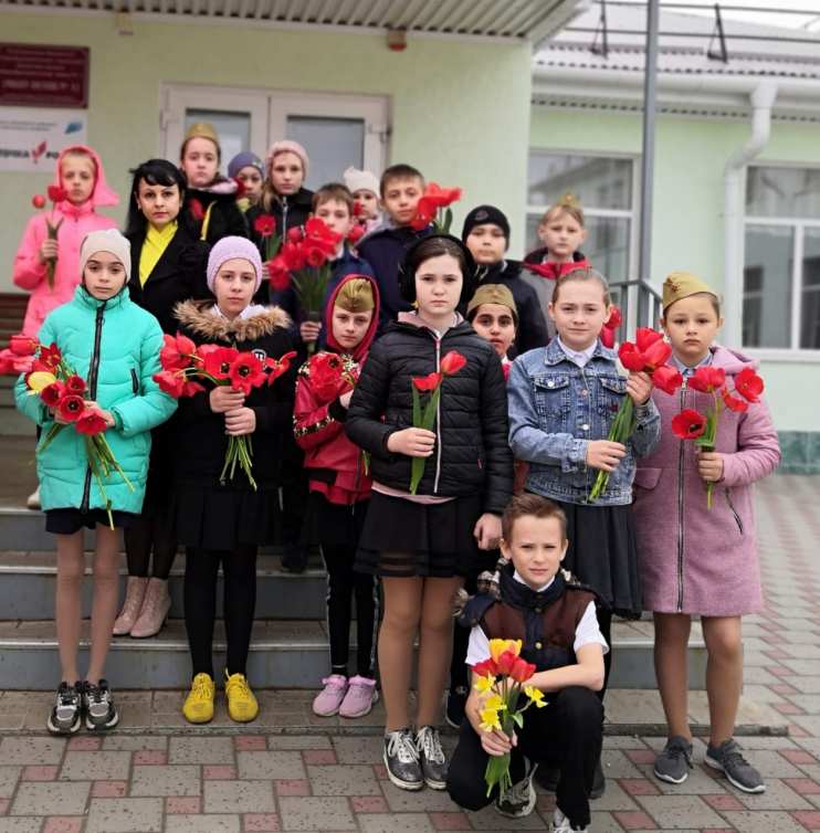 В преддверии Дня Победы я провожу классные часы и внеклассные мероприятия, на которых дети знакомятся с героическим прошлым нашей страны, читают стихи, поют песни на военную тематику. В конце мероприятий ребята обязательно возлагают цветы к Мемориалу на площади Юбилейной. Вот уже 4-й год мы с ребятами будем участниками акций «Георгиевская ленточка», «Мы помним! Мы гордимся!», шествия «Бессмертного полка» 9 мая.
