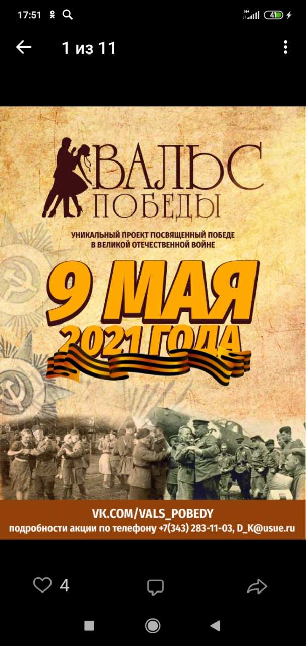 Воспитанники группы "Фитнес" приняли участие в международной акции "Вальс Победы"! Учащиеся 1-3 классов готовились к акции усердно и с трепетом! Все выучили основные движения танца вальс и, записав видео-сюжет, отправили его на сайт ВК. Огромная радость переполняла ребят, участвующих в этой замечательной акции, все получили огромное удовольствие. Солистами в вальсе Победы были Шумская Валерия и Никитенко Иван, учащиеся 2 "А" класса 51 школы г. Самара. В будущем ребята для себя решили - обязательно участвовать в акциях, приуроченных к датам великих и значимых событий нашей Родины! Воодушевившись танцевальным марафоном, ребята захотели поучаствовать и в других социально значимых мероприятиях: городской проект "Война глазами детей", городской проект "Я горжусь" - в данной акции предполагается сделать специальные фотографии с хештегом на фоне памятных мест города Самара.