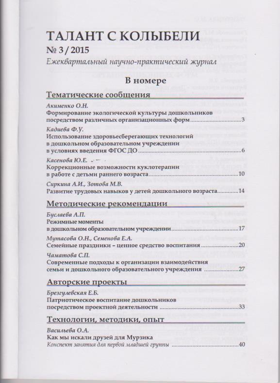 - научно-практический журнал «Талант с колыбели» №3/2015г.;