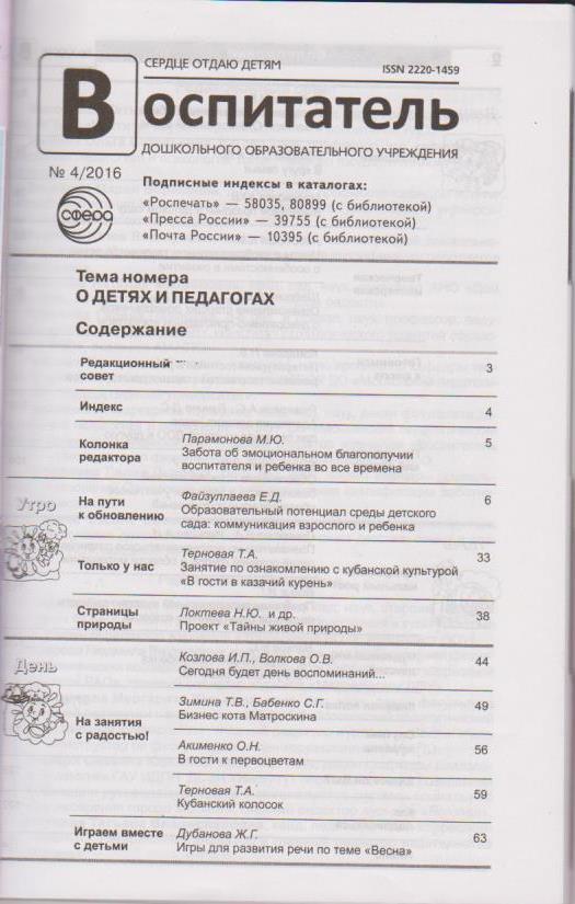 - журнал «Воспитатель ДОУ» №4/2016г.;