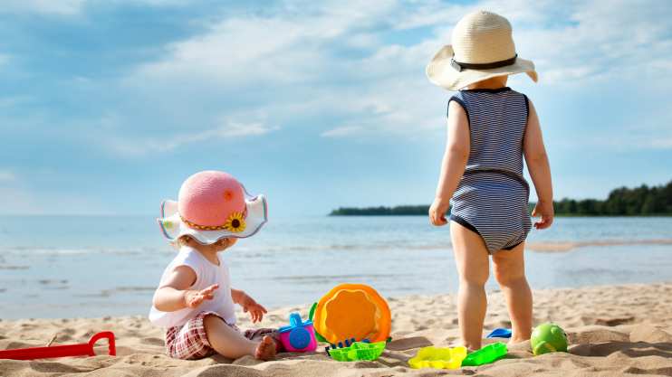 Совсем маленьким сложно объяснить все эти правила, поэтому следите за их выполнением. На первых порах вам нужно будет постоянно контролировать, направлять и поддерживать малыша. Игра с песком в солнечный день - отличное занятие, но не забывайте о том, что нежную кожу малыша нужно защищать от солнца - нанесите перед прогулкой солнцезащитный крем, и не забывайте надевать ребенку головной убор.
