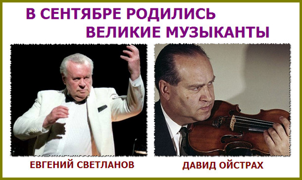 13 сентября 1908 года в Одессе появился на свет скрипач Давид Ойстрах. С его именем музыковеды связывают расцвет отечественной скрипичной школы. Его игра характеризовалась необычайной легкостью техники, идеальной чистотой интонации и глубоким раскрытием образов. Хотя репертуар Ойстраха включал знаменитые скрипичные произведения зарубежных классиков, он был неутомимым пропагандистом советских мастеров скрипичного жанра. Он стал первым исполнителем произведений для скрипки А. Хачатуряна, Н. Ракова, Н. Мясковского.