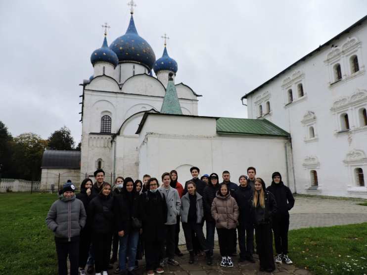 Всё было прекрасно, но увы – утром ждал автобус, чтобы отвезти в город Суздаль, который в средние века был столицей Владимирского княжества. Вырвавшись из многоликой шумной Москвы, ребята попали в сказочный мир старого кино (кстати, в этот момент в Суздале снимали какой-то новый фильм), где здания не выше трёх этажей, где чистые мощённые булыжником улочки, где чистый воздух и тишина. В Суздале ребята посетили Суздальский Кремль, Музей деревянного зодчества, прогулялись по паркам. Ночевали в прекрасном отеле «Николаевский Посад», построенном Николаем Валуевым. Тишина, мягкие кровати и шикарный завтрак оставили у ребят об этом отеле приятные воспоминания.