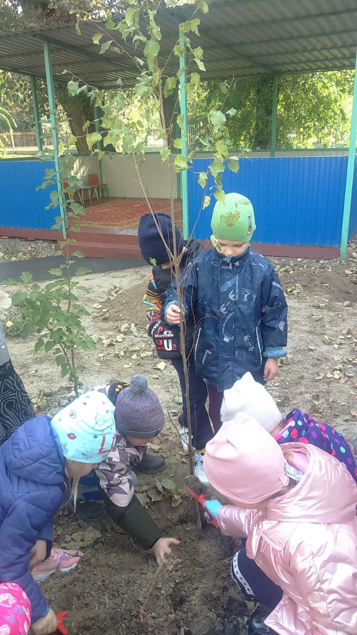 Дети подготовительной к школе группы "Ягодка" участвуют в акции "Посади дерево - выпускник 2022". Такое решение было принято вместе с родителями воспитанников. Они оказали помощь в приобретении саженцев березок в питомнике. Древонасаждение не единичный случай в нашем саду, а очень добрая традиция.