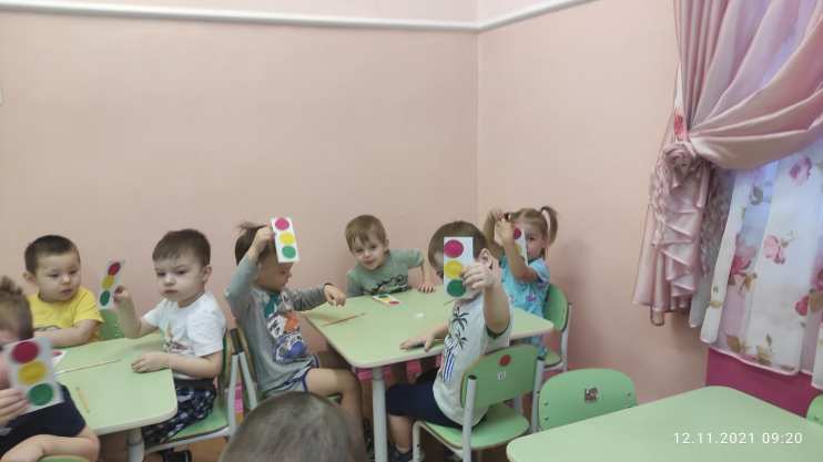 - учить наклеивать круги на прямоугольник, чередуя их последовательность (красный, желтый, зеленый);