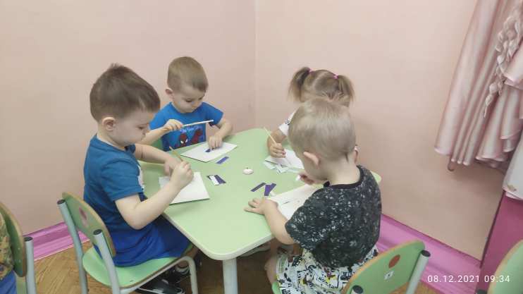 Учить детей аккуратно наклеивать детали изображения.