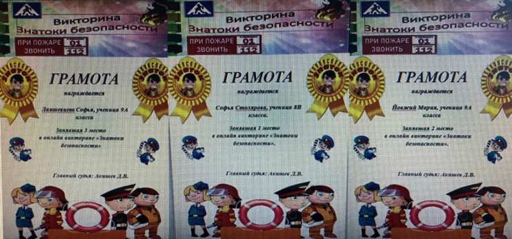 Итоги онлайн-викторины: 1 место – Софья Столярова, ученица 8В класса; 2 место – Мария Йовжий, ученица 9А класса; 3 место – Софья Лаишевцева, ученица 9А класса.