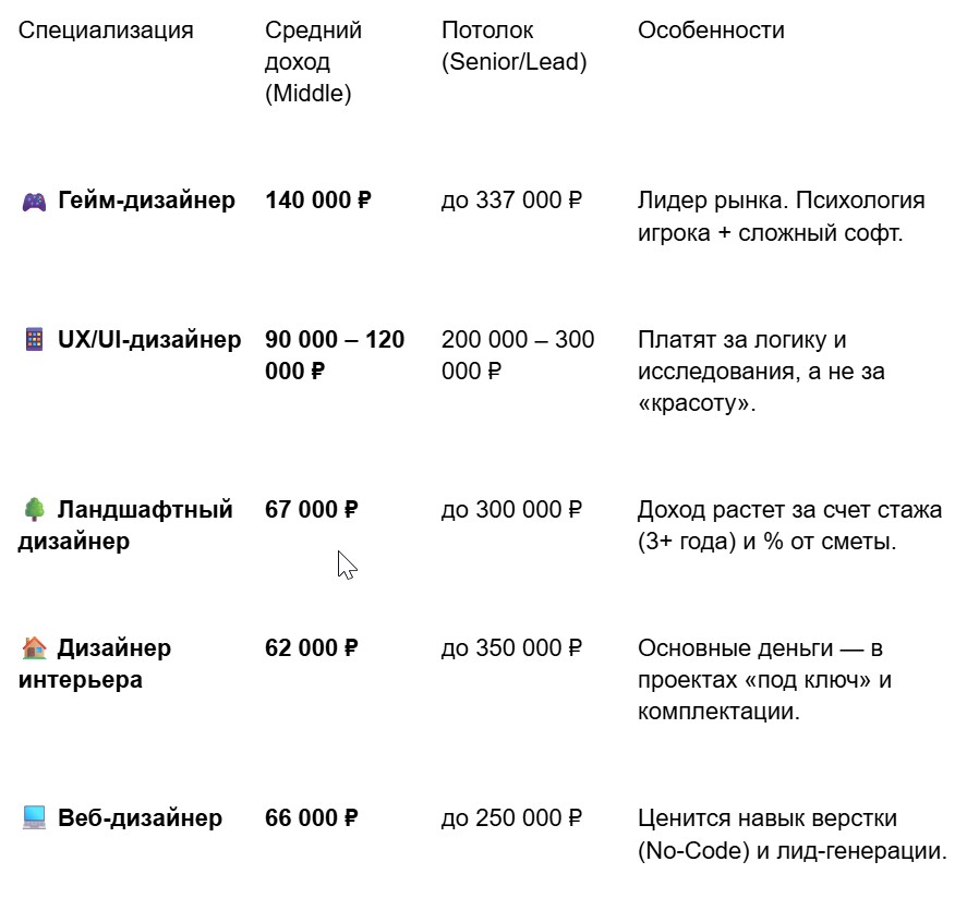 Реальная температурная карта доходов дизайнеров в РФ (прогноз 2026)