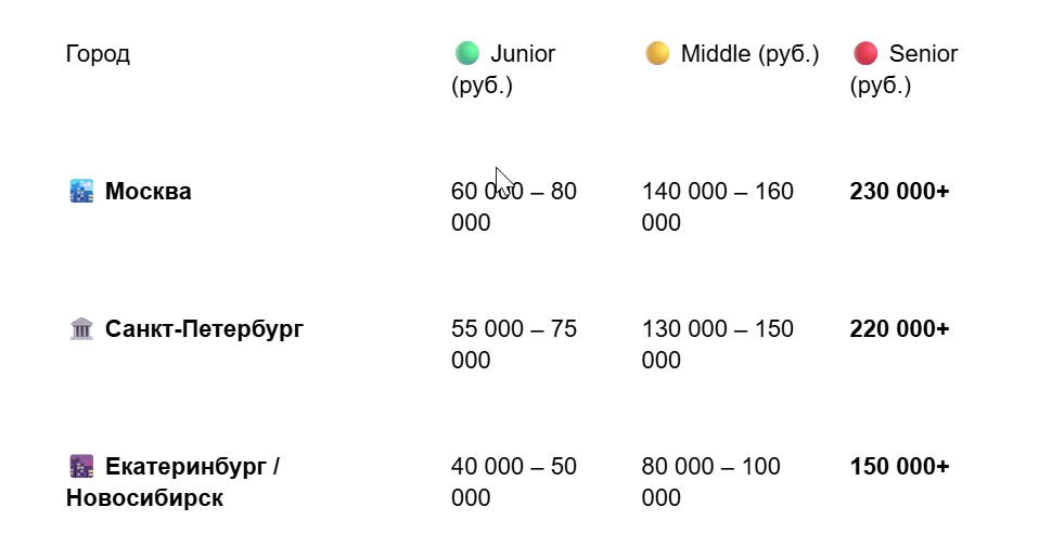 - Доход (2026): от 250 000 ₽/мес (Топ-10% рынка). В крупных IT-компаниях цифры доходят до 350 000 ₽+ [1].