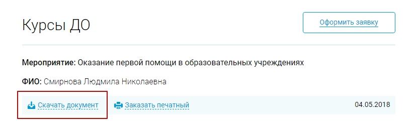 Как заказать Сертификат о прохождении обучения по курсу ДО?